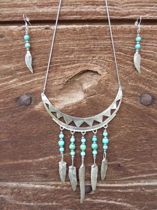 PARURE "PLUMES et TURQUOISES"