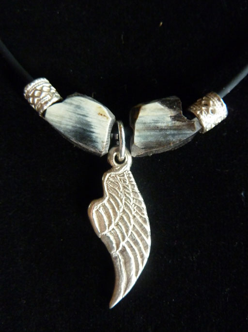 En argent 925°/°°, os et vernis.