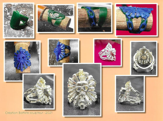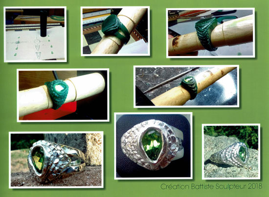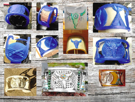 Tous les bijoux sont fabriqués à la main, principalement en argent 925°/°° dans mon atelier, à l'exception de la fonte. Celle-ci est réalisée par un fondeur professionnel, ce qui vous permet de choisir le métal dans lequel votre bijou sera fait (bronze, laiton, or, argent, avec possibilité de plaquage).