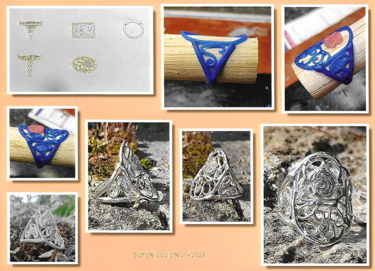 En argent 925°/°° réalisé à partir d'un dessin fourni par le client.