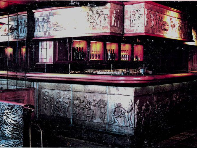 Décoration d'un bar inspirée des bas-reliefs d'Inde sur le Kamasutra.