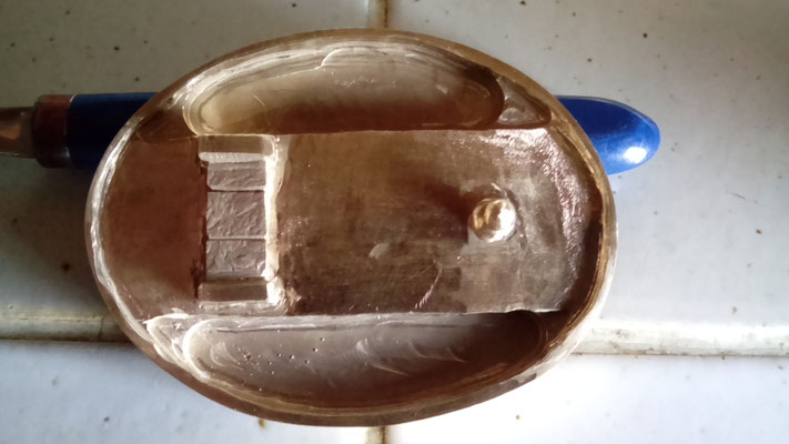En cire, faite à la main, elle servira à la réalisation du moule.