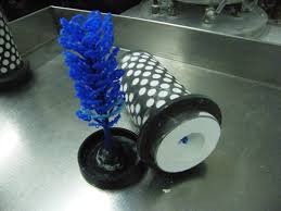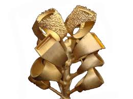 Image 2 : Les pièces en cire sont montées sur un arbre de coulé qui est ensuite déposé dans un cylindre en métal. Le cylindre est rempli d'un mélange plâtreux puis cuit. La cire fond et ne reste que l'empreinte en creux des objets. Le cylindre est alors rempli avec le métal en fusion.