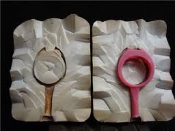 Image 1 : Le moule c'est l'empreinte de la maquette. Il est réalisé en caoutchouc ou en silicone et permet de réaliser plusieurs modèles en cire pour créer des objets en série. La cire est injectée sous pression.